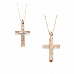 ΣΤΑΥΡΟΣ ΓΥΝΑΙΚΕΙΟΣ ΔΙΠΛΗΣ ΟΨΗΣ ΣΕ ΡΟΖ ΧΡΥΣΟ Κ14 ΜΕ ΑΛΥΣΙΔΑ