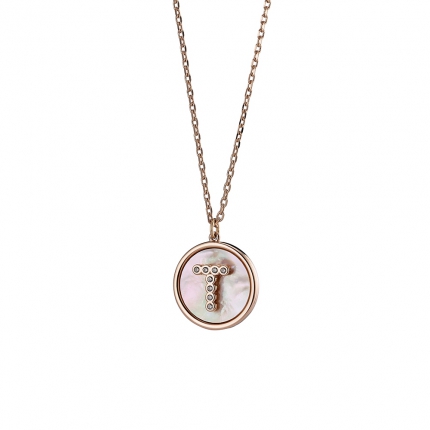 Υλικό: μεταλλικό με mother of pearl & λευκά cz Επιμετάλλωση: rose gold Μέγεθος: 44 cm & 3 cm (extension) / 1.5 cm (διάμετρος στοιχείου)